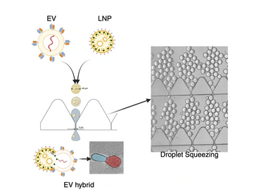Extracellular vesicles (EVs) are emerging as versatile drug delivery systems due to their intrinsic biocompatibility and targeting capabilities. However, EV integrity and efficient drug loading challenges hinder their clinical translation. To address these limitations, hybrid systems integrating lipid nanoparticles (LNPs) with EVs have gained attention for their potential in targeted and combinatorial drug delivery. This study presents a robust microfluidic approach for the scalable generation of drug-loaded EV-LNP hybrids (EV hybrids). The method facilitates controlled fusion between EVs and LNPs by utilizing a droplet-mediated squeezing mechanism. Lipid composition and microfluidic parameters are optimized for the fusion of EVs and LNPs and determined physicochemical and functional characterizations of the EV hybrids. In vitro studies demonstrate that EV hybrids exhibit enhanced targeting efficiency. Moreover, small-molecule therapeutics are successfully encapsulated within EV hybrids, significantly improving cytotoxic efficacy against melanoma in 2D and 3D culture models compared to drug-loaded EVs or LNPs alone. The work introduces a scalable, minimally disruptive microfluidic platform for engineering EV hybrids, offering a promising strategy to advance precision nanomedicine.