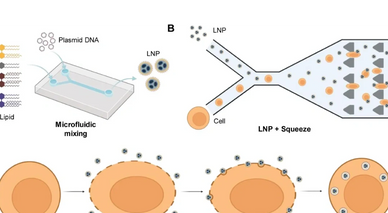 Chimeric antigen receptor (CAR)-T cell therapy has revolutionized cancer treatment by engineering patients' T cells to specifically target cancer cells. Traditional CAR-T cell manufacturing methods use viral transduction to integrate CAR genes into T cells, but this can cause severe side effects and immune reactions and is costly. To overcome these challenges, non-viral methods, such as plasmid DNA (pDNA) transfection, are being explored. Here, a high-throughput intracellular delivery platform that integrates microfluidic mechanoporation with lipid nanoparticle (LNP)-based delivery, LNP + Squeeze, is introduced. This system enhances pDNA transfection efficiency in T cells while maintaining cell viability compared to other non-viral transfection methods like electroporation. This platform successfully engineers CAR-T cells using primary human T cells with a high transfection efficiency and demonstrates potent cytotoxicity against melanoma cells. This approach offers a promising, cost-effective, and scalable alternative to viral methods, potentially improving the accessibility and efficacy of CAR-T cell therapies.